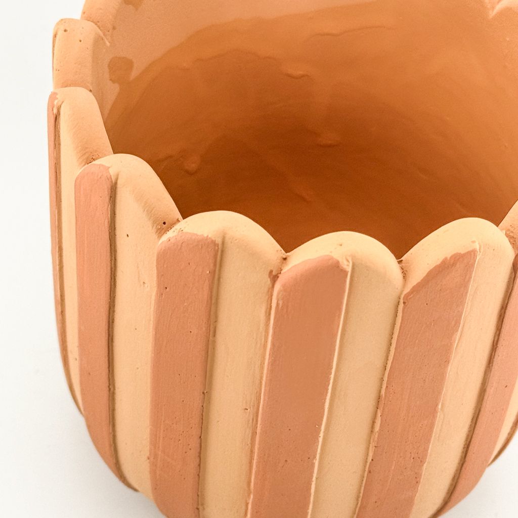 Hoe leuk is deze bloempot? Deze speelse maar ook elegante bloempot is perfect om een mooie bos bloemen in te zetten. De aardewerk bloempotten kunnen niet goed tegen water, maar hoe mooi is het om er een prachtige kunstbloem, of droogbloem in te zetten. Ga je toch liever voor een echte bos bloemen, dan kan dat ook als je er een binnenvaasje/potje voor gebruikt om het water in te doen. De afmetingen van de bloempot zijn