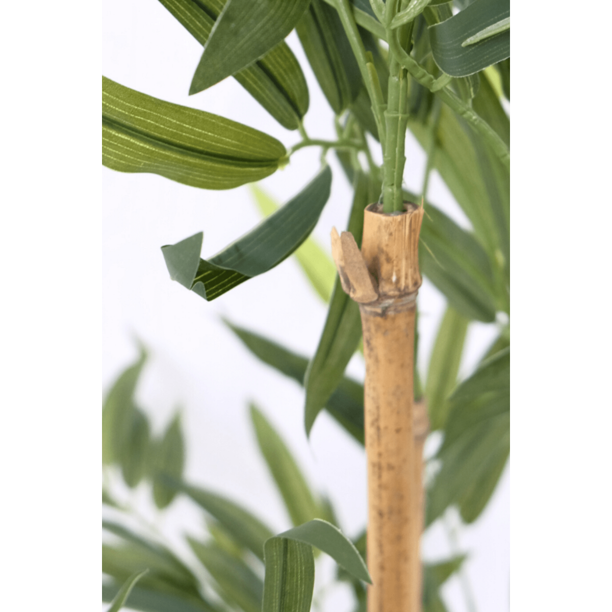 Bamboe is een van de snelst groeiende planten op aarde, maar daar hoef je met deze kanjer niet bang voor te zijn. Deze Bamboe kunstplant is bijna niet van echt te onderscheiden en heeft erg natuurgetrouwe stammen en maar liefst 720 blaadjes. Normaal vergt de Bamboeplant best wat zorg, maar deze knapperd is al blij met een flinke stofbeurt. Daar worden wij in ieder geval blij van! How about you?