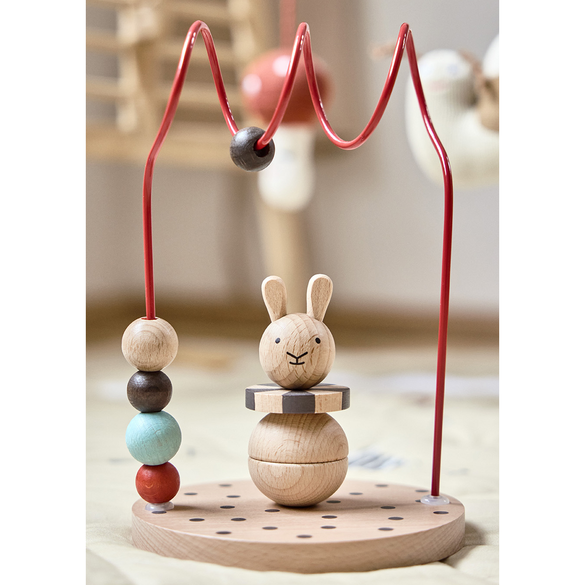 De Circus Rabbit Abacus is een charmant stapel speelgoed met een houten konijn en kleurrijke houten kralen. Kinderen kunnen het konijn op de abacus stapelen en een speelse en interactieve ervaring creëren. Met zijn eenvoudige ontwerp en levendige kleuren voegt de Circus Rabbit Abacus een leuke decoratieve touch toe aan elke ruimte en biedt het entertainment voor kleintjes.