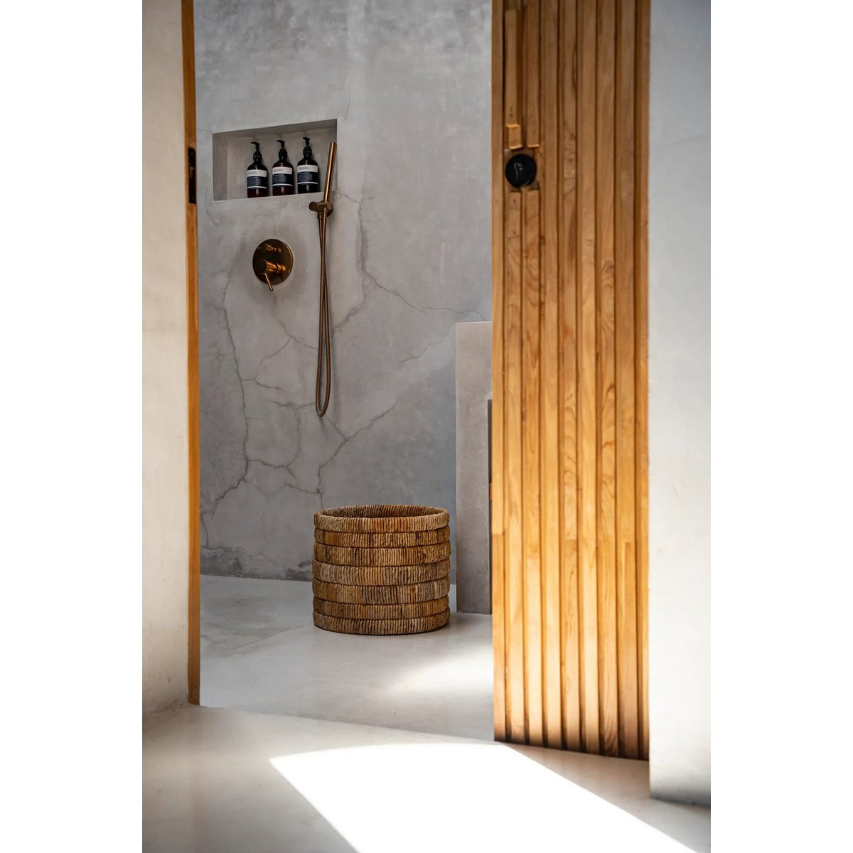 Deze boeiende mand, handgeweven van bananenblad, toont een vakkundig vervaardigd patroon van rijen en kolommen, waardoor textuur en details op een hoog niveau worden toegevoegd. De ronde vorm combineert op harmonieuze wijze traditionele kunst met eigentijds design en biedt een veelzijdige opbergoplossing die ook dienst doet als prachtig decoratief stuk. Ervaar de perfecte combinatie van functionaliteit en esthetische aantrekkingskracht met de Chuma Basket.