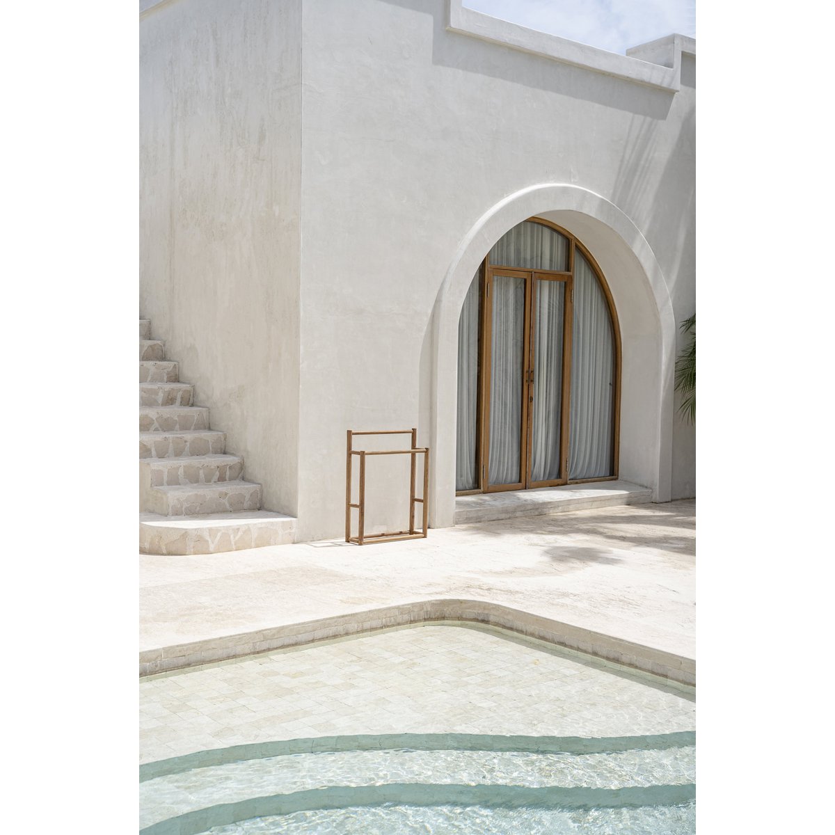 Geef uw badkamer, poolhouse of overdekte buitenruimte een vleugje rustieke elegantie. Onze handdoekhanger is handgemaakt van natuurlijk teakhout en voegt warmte en karakter toe aan je ruimte. Ons teakhout is op verantwoorde wijze gewonnen, zodat je zonder schuldgevoel van je handdoekhanger kunt genieten. Hang uw handdoeken, badjassen of zelfs badaccessoires in stijl op. Het is meer dan een hanger; het is een stukje natuurschoon dat ervoor zorgt dat uw badkamer aanvoelt als een gezellig toevluchtsoord.