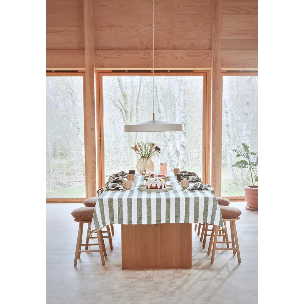 Zet een mooie tafel met de olijfgroen gestreepte tafelkleed en maak maaltijd een beetje extra leuk. Het tafelkleed is gemaakt van organisch katoen en heeft een gestreept patroon, dat beide mooi is voor een feestelijk gedecoreerde tafel, maar ook voor dagelijks gebruik. Het tafelkleed is verkrijgbaar in twee verschillende maten en vier kleuren, en kan gemakkelijk worden gecombineerd met onze servetten, die zijn gemaakt in dezelfde gestreepte print. L300304 Kleur: Olijfmateriaal: 100% Organische katoenafmetingen: H260 x W140 cm