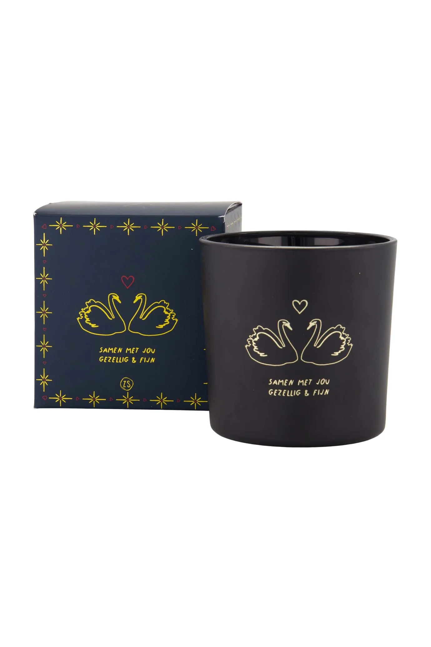 geurkaars glas in doosje zwanen donkerblauw/goud