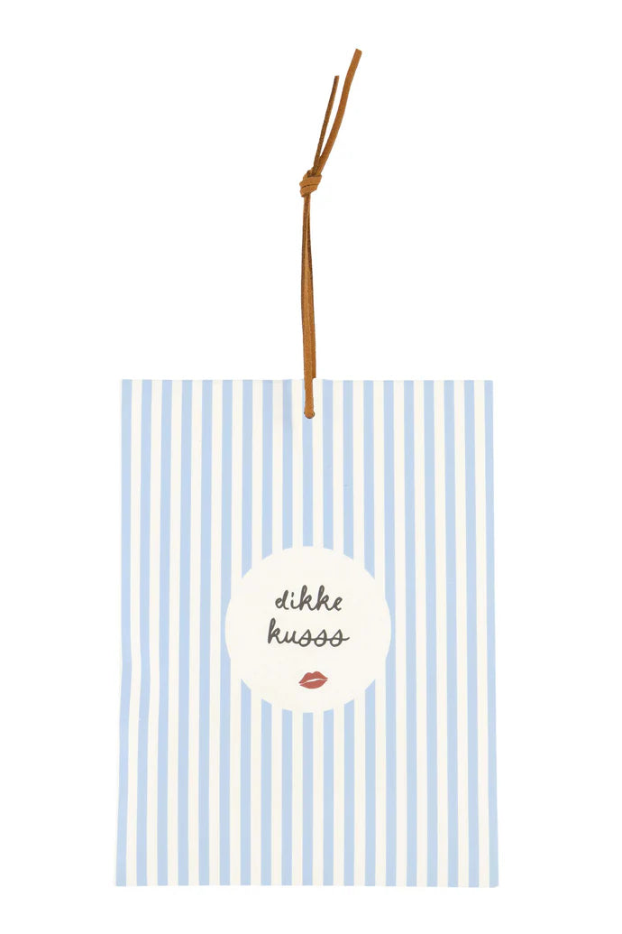 Dit geurzakje van Zusss is o-zo leuk! Deze laat jouw hele kamer lekker ruiken! Met het lintje hang je 'm gemakkelijk aan een deurklinkt of in je kledingkast. Dit geurzakje is blauw/wit gestreept met op de voorkant de tekst 'dikke kusss'. Het zakje ruikt heerlijk naar schone was. Het zakje heeft een formaat van 12x16cm.