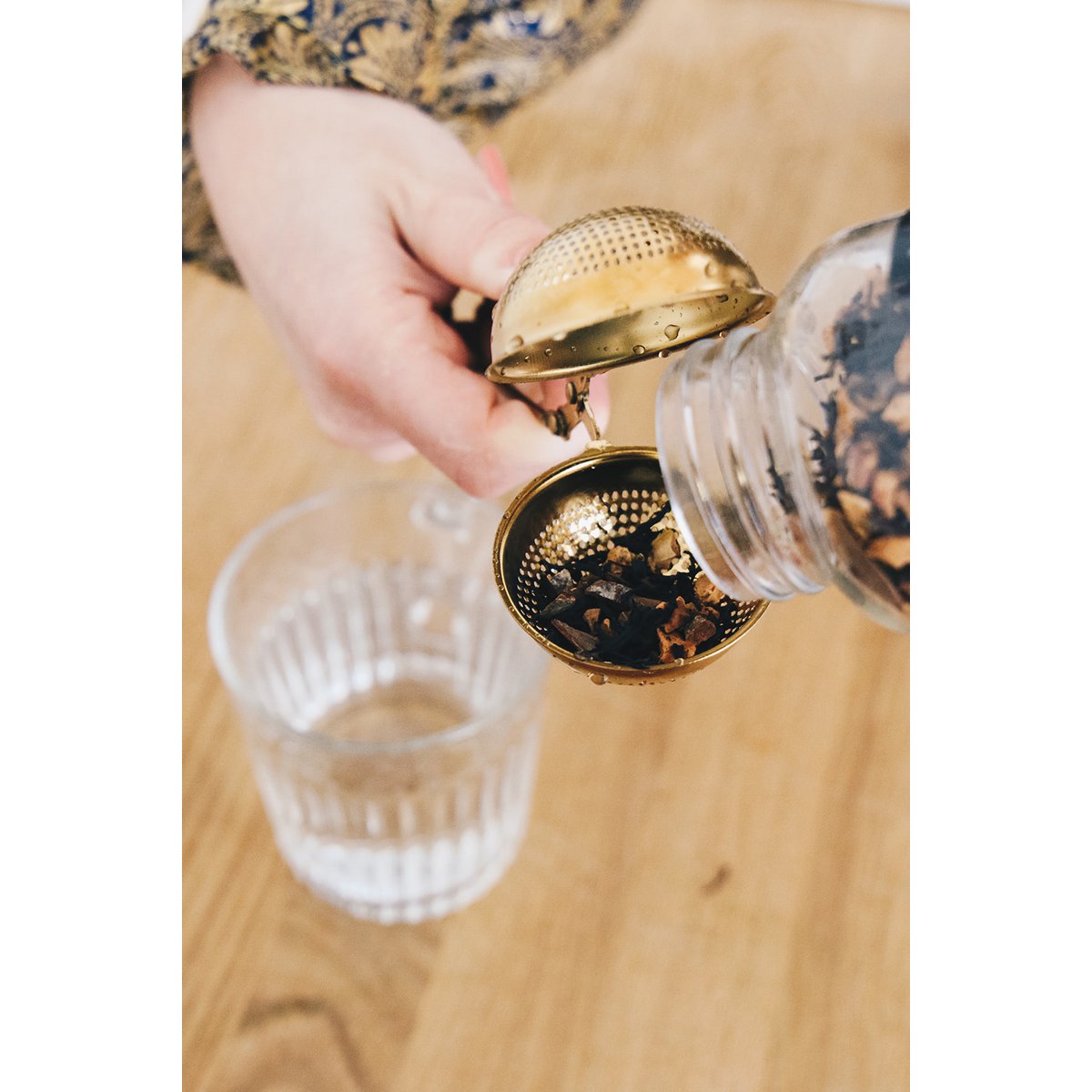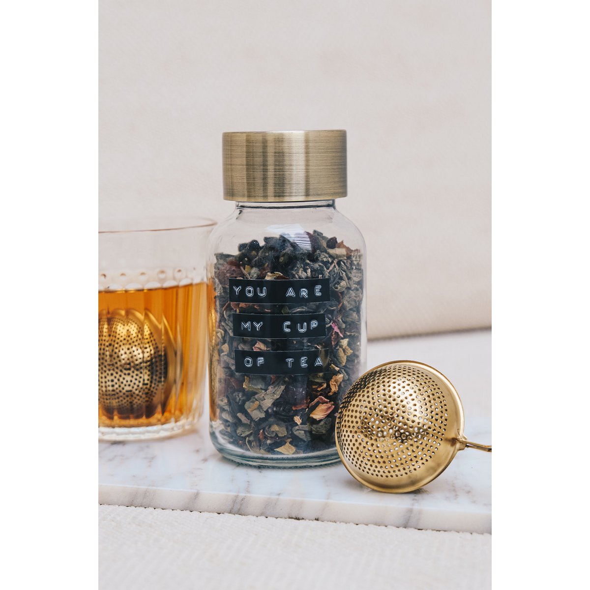 Kom tot rust met een heerlijk kop warme thee. De thee zit in een glazen fles met een brass schroefdop en heeft een inhoud van 250ml.