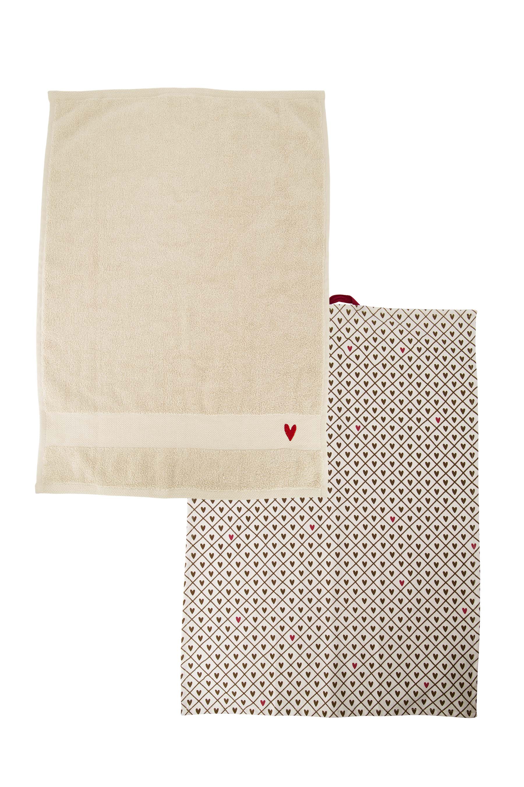 De Zusss keukenset met hartje is een charmante aanvulling voor elke keuken. Deze keukenset met hartje combineert zachte zandtinten met warme port- en bruine accenten, wat zorgt voor een sfeervolle uitstraling. De set bestaat uit een handdoek en een theedoek, beide voorzien van subtiele hartjesdetails die het geheel uniek maken. Met deze keukenset met hartje haal je niet alleen functionaliteit, maar ook een warme en persoonlijke touch in huis. Perfect binnen onze keuken collectie voor wie basic en stijlvol wil combineren.