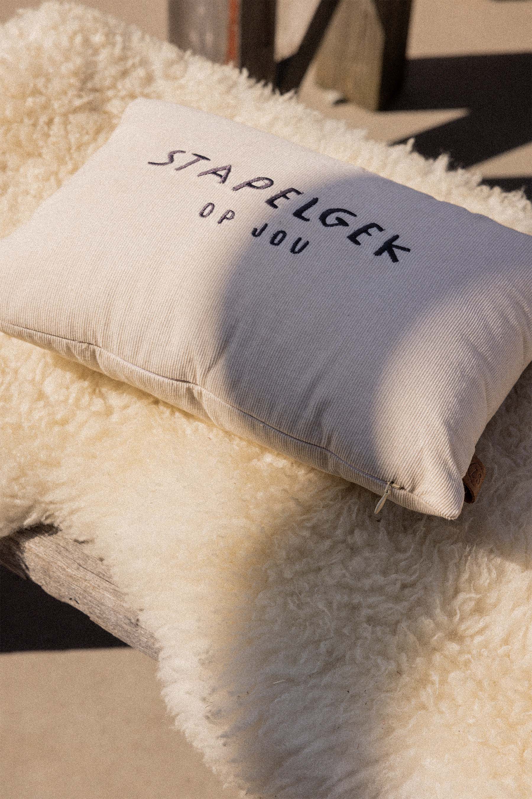 Het Zusss kussen corduroy stapelgek is een sfeervolle toevoeging aan je woonkamer. Dit kussen corduroy voelt heerlijk zacht aan dankzij de ribstof en heeft een fijne maat van 35x25 cm. Met de speelse tekst 'stapelgek op jou' krijgt je interieur een warme, persoonlijke touch. Het kussen corduroy is uitgevoerd in een natuurlijke zandkleur met een subtiele antracietgrijze print, perfect om te combineren met andere woonaccessoires. Dit kussen corduroy maakt jouw zithoek extra gezellig en uniek.