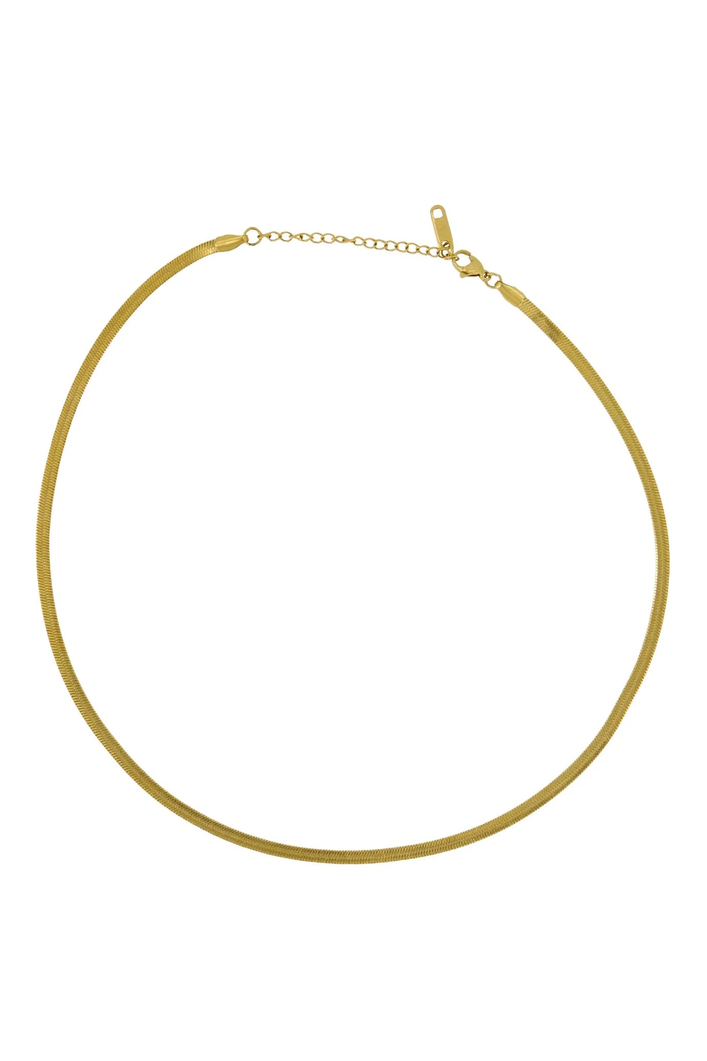 Deze plat ketting met visgraat structuur van Zusss is een subtiele toevoeging aan je sieraden collectie. De goudkleurige ketting heeft een fijne, platte vorm die comfortabel draagt en een tijdloze uitstraling geeft. Dankzij de bijzondere visgraat structuur valt deze ketting extra op, zonder te overheersen. Perfect om dagelijks te dragen en makkelijk te combineren met andere accessoires. Een basic must-have die jouw look net dat beetje extra geeft.