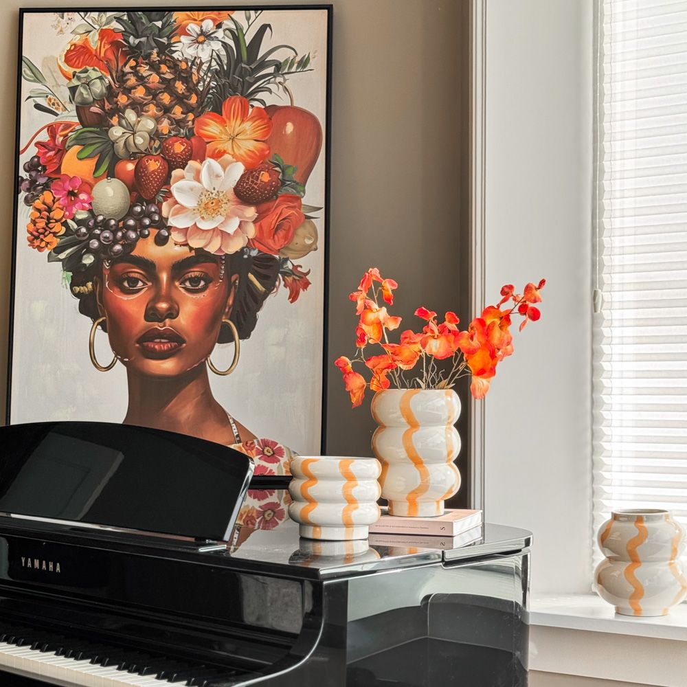 Stunning! Dit prachtige schilderij, waarin een vrouwelijke figuur schittert in abstracte kleuren. De levendige lijnen en rijke tinten vormen een boeiend stuk dat zowel elegant als warm is. Voeg een vleugje luxe en verfijning toe aan je ruimte met dit opvallende kunstwerk van 80x120x3,5cm.