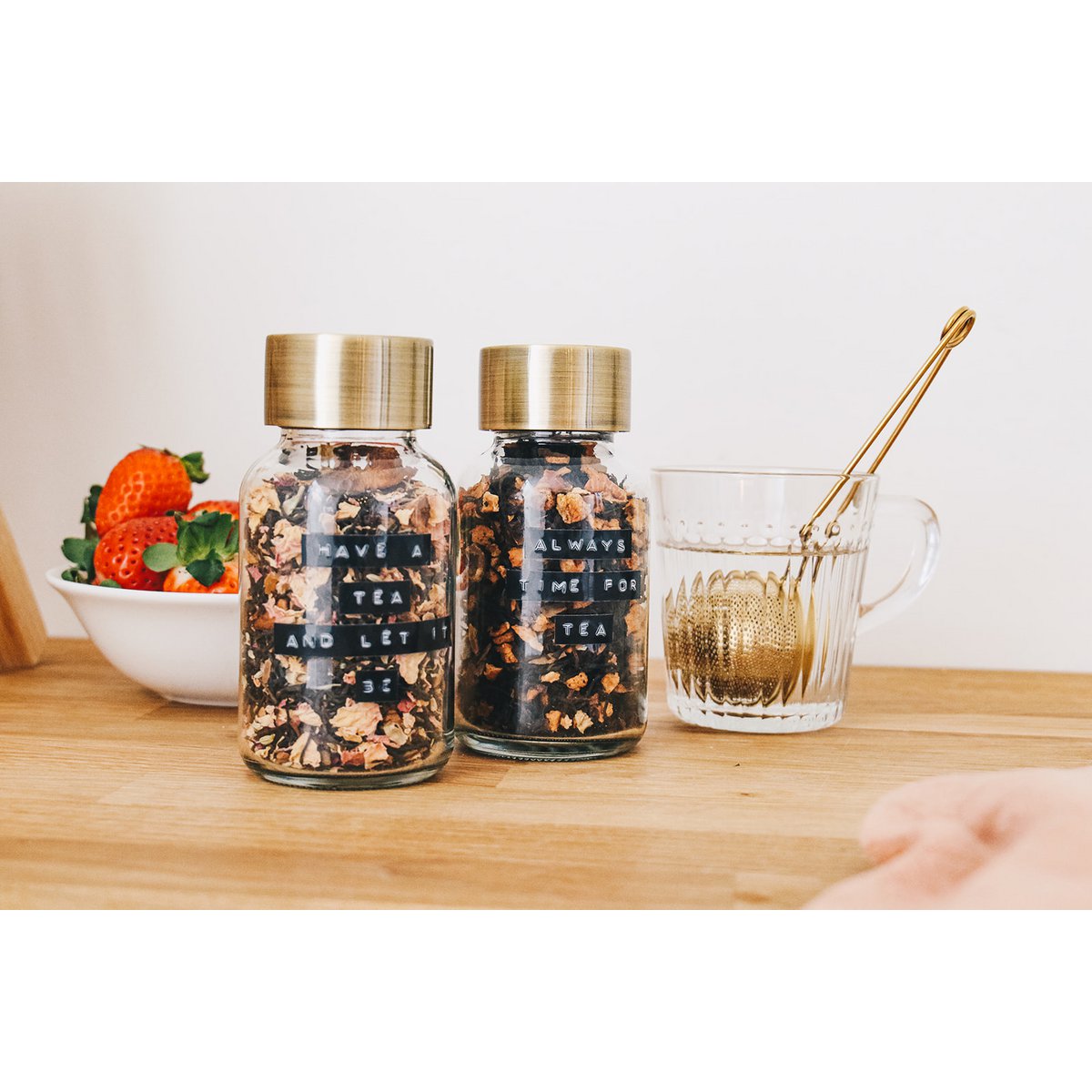 Kom tot rust met een heerlijk kop warme thee. De thee zit in een glazen fles met een brass schroefdop en heeft een inhoud van 250ml.