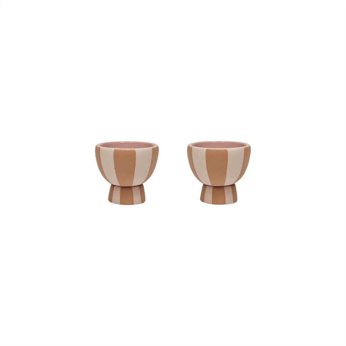 De Toppu EggCup, gemaakt van 100% steengoed, biedt een charmante toevoeging aan uw ontbijttafel. Handgemaakt en met zorg geschilderd, straalt elke Eggcup een uniek karakter en stijl uit. Verkocht in een pak van twee, voegen ze een vleugje speels aan je eettafel toe.