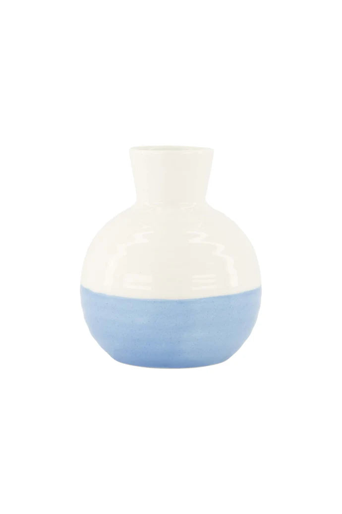 Deze vrolijke Zusss vaasje maakt jouw woonkamer helemaal af! Dit item is gemaakt van keramiek en heeft een bolle vorm. Het vaasje is wit aan de bovenzijde en blauw aan de onderkant. De vaas heeft een doorsnede van 7cm en is 13cm hoog