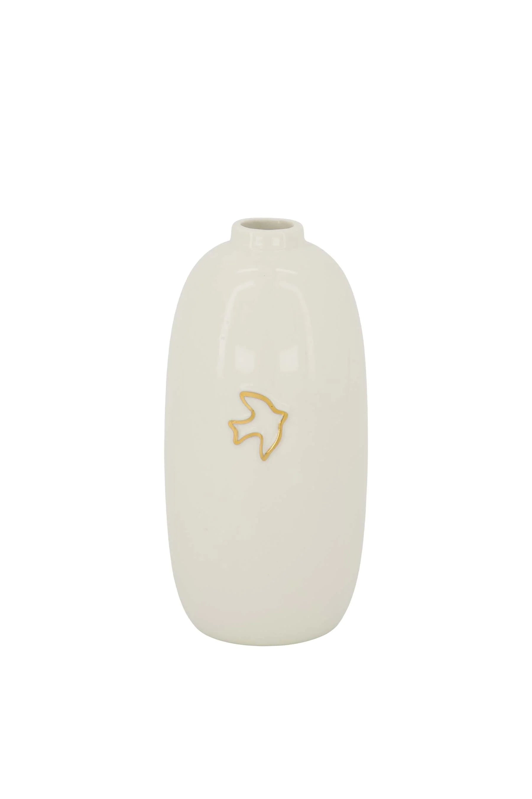 Dit Zusss keramiek vaasje met vogeltje is perfect om een warme sfeer in je woonkamer te creëren. Het witte vaasje met subtiele gouden vogelaccenten valt op door zijn tijdloze en basic uitstraling. Het vaasje is een mooi woonaccessoire dat jouw interieur een unieke en stoere touch geeft. Combineer het met droogbloemen of een enkel takje voor een natuurlijke uitstraling. Dit keramiek vaasje is een fijn detail in jouw woonkamer, dat rust en stijl uitstraalt.